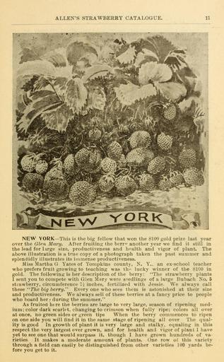 | Keywords: Allen's strawberry catalogue for 1900 (16569601782).jpg of the berry The strawberry plants <br> I sent you to compete with Glen Mary were seedlings of a large Bubach No 5 <br> strawberry circumference 7i inches fertilized with Jessie We always call <br> these The big berr I/ ' Every one who sees them is astonished at their size <br> and productiveness We always sell of these berries at a fancy price to people <br> who board her 3 during the summer <br> As fruited htre the berries are large to very large season of ripening med- <br> ium; color dark scarlet changing to crimson when fully ripe; colors all over <br> at once no green sides or ; ;reen tips When the berry commences to ripen <br> on one side you will find it in the same stage of ripening all over The qual- <br> ity is good In growth of plant it is very large and stalky equaling in this <br> respect the very largest ever grown and for health and vigor of plant 1 have <br> yet to see one that would surpass it though I have grown hundreds of va <br> rieties It makes a moderate amount of plants One row ot this variety <br> through a field can easily be distinguished from other varieties 100 yards be- <br> fore you get to it 43881328 149732 78361 Page 11 Text http //www biodiversitylibrary org/page/43881328 1900 10 5962/bhl title 78361 Allen Co Salisbury Md ; Henry G Gilbert Nursery and Seed Trade Catalog Collection Biodiversity Heritage Library Allen's strawberry catalogue for 1900 Garden Stories Allen Co Salisbury Md Catalogs Maryland Nurseries Horticulture Nursery stock Salisbury Strawberries U S Department of Agriculture National Agricultural Library bhl page 43881328 dc identifier http //biodiversitylibrary org/page/43881328 bhlGardenStories Fruit New York BHLinbloom allen co salisbury md nurseries horticulture u s department of agriculture national agricultural library bhlgardenstories new york bhlinbloom Information field Flickr posted date ISOdate 2015-02-18 CC-BY-2 0 BioDivLibrary https //flickr com/photos/61021753 N02/16569601782 2015-08-24 22 53 44 cc-by-2 0 PD-old-70-1923 Salisbury Maryland Strawberries Allen's strawberry catalogue for 1900 Photos uploaded from Flickr by Fæ using a script |