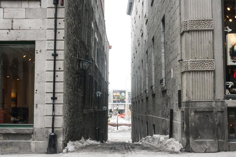 Keywords: alley path city downtown montreal quebec canada cityscape architecture business historic antique old landmark attraction tourism buildings street