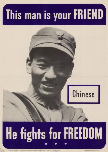 | Keywords: Allied Chinese.jpg en An American World War II propaganda poster The poster reads This man is your FRIEND Chinese He fights for FREEDOM zh-cn 美国二战时 宣传画,上书 这个人是你的 友 中国人 他为自由 战 http //digital library unt edu/ark /67531/metadc233/ USA GOVERNMENT 1942 PD-USGov This Man Is Your Friend He Fights For Freedom Sino-American military ties Relations of the Republic of China and the United States |