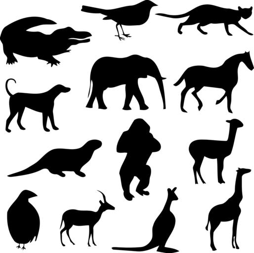 Keywords: alligator animal bird cat crocodile dog elephant giraffe gorilla hen horse kangaroo otter silhouette