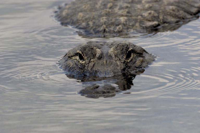 Keywords: alligator head eye wildlife nature water submerged looking reptile predator tropical