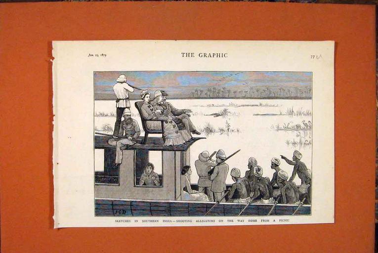 | Keywords: Alligatorshoot1879.jpg en Sketches in Southern India Shooting alligators on the way home from a picnic Views from the ILLUSTRATED LONDON NEWS and The Graphic some with later hand coloring all from ebay auctions Loodhianah on the Sutlej 1846 Sikh Soldiers 1846 The British Museum 1851 An Indian Railway Station 1854 shown above Banyan Tree 1856 Travelers overtaken by the inundation of a flash flood 1856 Hindoo thugs and poisoners 1857 Snake charmers in India 1857 Ruins Brahmunabad Sind 1857 Hindoostanee Dhoolie used by Hospitals and in the Field 1857 The Chowk or Square before the Palace of the Rajah Indore Oct 3 1857 with hand coloring Fort of Allahabad 1857 Temple of Juggernaut 1857 The Mutiny in India defenses of Delhi 1857 The recapture of Allahabad 1857 The Red Fort after its recapture January 1858 Dawk Wallahs of Bengal 1858 An Indian Railway Station Defended and The Mhow Fort 1858 Fireworks at Moorshedabad from a Native Drawing 1858 The Hoolie Festival 1858 The Hindoo Money-Changer 1859 The Keranchie-Kidrapore Omnibus 1859 Calisthenic exercises in India 1860 An Elephant Taking Care of Children 1863 Peruvian bark tree plantation in the Neilgherry Hills 1864 Milk-women in the Camp 1864 Performing Goat 1864 Shoeing a Bullock in India 1864 Effects of the Cyclone at Calcutta 1864 An Indian Harlequin Playing the Tiger 1864 The Social Science Congress at Sheffield Sir Manockjee Cursetjee delivering his essay on education in India 1865 Tumblers and Jugglers 1872 Eclipse expedition to India 1872 Scene of the gunpowder explosion at Agra Fort 1872 Going to the Races an Upcountry Scene in India from The Graphic 1872 Sir Jamsetjee Jeejeebhoy's School of Art at Bombay from The Graphic 1872 An Indian Portrait Painter from the Illustrated Times 1872 Indian Modes of Irrigation image 1 c 1874 Indian Modes of Irrigation image 2 c 1874 An Elephant Auction in India 1875 A Serpent Charmer 1875 A Rhinoceros Fight at Baroda 1875 The Prince of Wales's voyage to India taking ice on board HMS Serapis 1875 A Rajah goes in state to a reception by the Prince of Wales at Bombay 1875 Operatic company en route to India 1875 The Feast of Lanterns at Bombay 1875 Loading bullock carts 1875 In the Synagogue of the White Jews Cochin Feb 5 1876 with hand coloring Bruising Rice for Sweetmeats Feb 5 1876 with hand coloring A Fakeer 1876 A Strolling Minstrel at Madras Playing the Tingadee 1876 A Hindoo Mendicant Pilgrim 1876 On Board Steamer Indus taking soundings 1876 On the Way to India Southhampton 1876 The Royal Visit to India Arrival of the Prince of Wales at Agra 1876 The Perahara Festival at Kandy Ceylon before the Prince of Wales 1876 The Prince of Wales Visiting the Monkey Temple Benares 1876 Royal Visit Sans Souci Bombay 1876 Bombay The Banquet to Two Thousand Sailors of the Fleet 1876 Entry of the Prince of Wales into a City of India 1876 Triumphal Arch on the Alexandra Railway Bridge at Wuzeerabad 1876 A Tiger Hunting Party 1876 Padding a Tiger 1876 Crossing a Nullah in the Terai 1876 The Prince of Wales on the Road to the Temple of Parbuttee near Poonah 1876 The Modern Juggernauth 1877 Wood Carver Simla 1877 The Jowaki Campaign North-West Frontier of India 1877 Paris Exhibition Pavilion of the Prince of Wales's Indian Collection 1878 The War with the Jowakis North-Western India 1878 An Indian Night Watchman 1878 An Unwelcome Visitor-- A Frequent Incident of Anglo-Indian Life from The Graphic 1879 Sketches in Southern India shooting alligators on the way home from a picnic from The Graphic 1879 Ten Days' Sporting Trip in the Jungle of India from The Graphic 1880 Shooting the Ibex 1880 Bringing the Head of the Ibex Home 1880 A Dust Storm in Camp 1880 Deportation of Sidars into India Halt for Prayer Sunset 1880 Preparing for a Race Meeting 1880 A Hindoo Shrine at Allahabad 1881 Indigo Cultivation Tirhut Bengal from The Graphic 1881 Twenty-four Hours in the Life of a Subaltern from The Graphic 1882 Field Firing at Peshawur from The Graphic 1882 Small Sport in India from The Graphic 1882 Quail Snaring with Trained Cattle 1883 To India on P O Steamer Cathay 1883 Ilbert Dynamite Conspiracy Trial 1883 Tea Cultivation in India -- a Tea Garden on the Borders of Nepaul from The Graphic 1883 Pig Sticking in India from The Graphic 1883 Christmas in Southern India from The Graphic 1884 Lime Cutting in India 1885 India Regimental Gymkhana Races 1885 Fancy Dress Ball at Dharmshala Punjab 1885 Scindia's Fortress of Gwalior Central India 1885 India Days Ravine Deer Stalking from The Graphic 1885 Mandalay Capital of the Kingdom of Burmah 1885 An Elephant Battery in Action near Mingyan Burma from The Graphic 1886 The Fighting in Upper Burma from The Graphic 1886 The Rebellion in Burma from The Graphic 1886 A Pearl Fishery in Ceylon from The Graphic 1887 Indigo Manufacture in India from The Graphic 1887 A Ceylon Surf Boat from The Graphic 1887 The Burma Campaign from The Graphic 1887 Transport of Trees in the Forests of the Himalayas 1888 Young Civilian's First Year in India 1888 Hyena-Spearing in India 1889 Tiger-Shooting in India 1889 Bear-shooting Kashmir 1889 Hunting with cheetas at Dhar 1889 A Day's Hawking at Dera Ghazi Khan Punjaub from The Graphic 1889 The Great Hall at 'The Strangers' Home' West India Dock Road from The Graphic 1889 The Yule Log in India--Bringing in the Ice from The Graphic 1889 Native Cavalry Tent-Pegging in Sections 1890 Mompunga a Lushai chief and Mr Murray Political Agent taking the oath of friendship 1890 The Lushai Expedition 1890 Highway Robber -- Indian Monkey 1891 The Morning Ride 1891 Ratnagiri Bombay 1891 Praying for Rain in Northern India A Hindoo Fakir Invoking the Gods 1891 The Sleepy Punkah-walla from The Graphic 1891 Unwelcome Visitors Crows at a Tennis Party in India from The Graphic 1891 The Locust Plague in Northern India from The Graphic 1891 The fighting near Gilgit on the Northwestern Frontier from The Graphic 1891 The Cavalry Manoeuvres of Attock Native Cavalry Stopping a