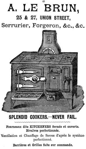 | Keywords: Almanach Chronique de Jersey 1892 Le Brun forge stove-enh.png Almanach_Chronique_de_Jersey_1892_Le_Brun_forge_stove jpg 2010-10-18 18 21 UTC Almanach_Chronique_de_Jersey_1892_Le_Brun_forge_stove jpg see there derivative work Akroti <span class signature-talk >talk</span> contrast enhanced ak Almanach_Chronique_de_Jersey_1892_Le_Brun_forge_stove jpg PD-old Original upload log This image is a derivative work of the following images File Almanach_Chronique_de_Jersey_1892_Le_Brun_forge_stove jpg licensed with PD-Art PD-old 2006-01-05T09 22 07Z Man vyi 709x1236 603938 Bytes <nowiki>Advertisement for Le Brun locksmith and blacksmith from the almanac of La Chronique de Jersey 1892 Advertisements in Jersey Jersey in the 19th century Stove</nowiki> Uploaded with derivativeFX 1892 advertisements Advertisements in Jersey Jersey in the 19th century Coal stoves |