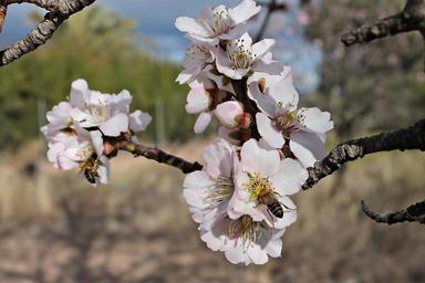 Keywords: almond flower bees pollen honey insects flowering beautiful