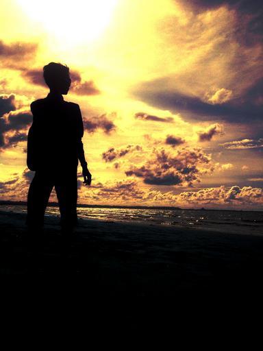 Keywords: alone beach sun young silhouette