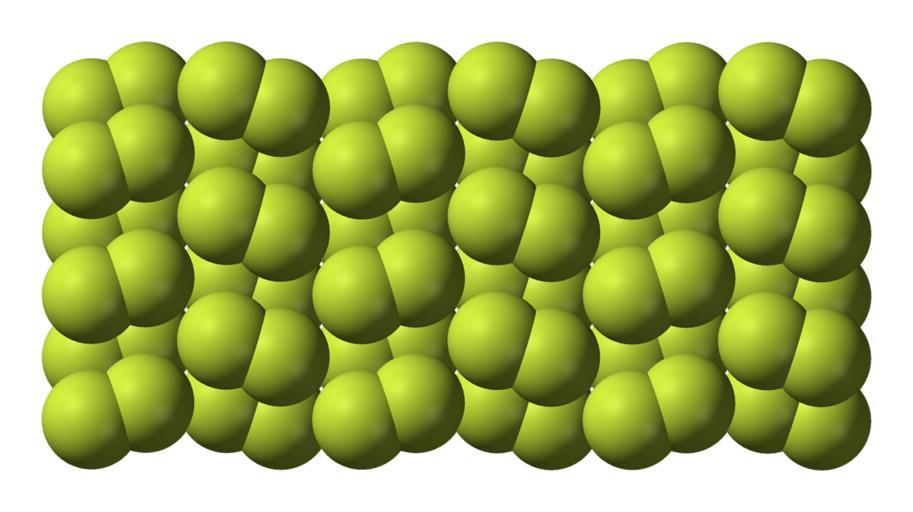 Keywords: Alpha-fluorine-3D-vdW-A.png Space-filling model of part of the crystal structure of α-fluorine Crystal structure data from http //dx doi org/10 1063/1 1670323 J Chem Phys 49 1902 1968 Image generated in http //accelrys com/products/discovery-studio/visualization/discovery-studio-visualizer html Accelrys DS Visualizer Own 2008-06-11 Ben Mills Benjah-bmm27 Images by Ben Mills Space-filling models Alpha-fluorine |