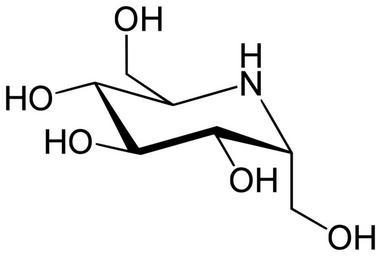 Keywords: Alpha-homonojirimycin.svg en α-homonojirimycin an azasugar de α-Homonojirimycin ein Azazucker own ; ISBN 978-0-387-92264-5; S 491 Yikrazuul 2010-09-12 Iminosugars