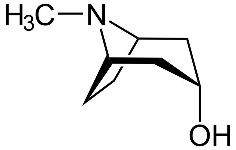Keywords: Alpha-Tropanol.svg Struktur von alpha-Tropanol Tropin Structure of alpha-tropanol tropine own 2007-03-25 NEUROtiker Own work all rights released Public domain Tropanols