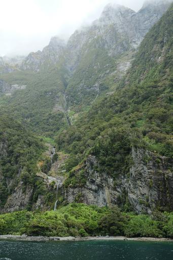 Keywords: Alpine fault line crack in Milford Sound.jpg Alpine fault line crack in Milford Sound visibly extending all the way straight up the mountain-side just left of center Own 2016-01-12 Pseudopanax wikipedia en 44 36 41 S 167 50 32 E Alpine Fault Milford Sound |