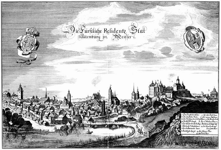 Keywords: Altenburg-1650-Merian.jpg Artwork creator Matthäus Merian Kupferstich von Altenburg Veröffentlicht in der Topographia Superioris Saxoniae 1650 ein Band der Topographia Germaniae b 1650 copper engraving object history exhibition history credit line de The princely residence city Altenburg in Meißen Die fürstliche Residenzstadt Altenburg in Meißen accession number Der 2D-Scan stammt aus den http //www digitale-bibliothek de/scripts/ts dll s 3 id BED8F7E3 mp /art/1724/ sc DVD_Stadtansichten htm 5000 Stadtansichten von http //www digitale-bibliothek de Directmedia Topographia Superioris Saxoniae Thüringiae Misniae et Lusatiae Frankfurt am Main 1650 PD-100 <gallery> Altenburg-1650-Merian png </gallery> DEFAULTSORT Altenburg City views of Altenburg Engravings by Matthäus Merian History of Altenburg Engravings of Topographia Superioris Saxoniae Thüringiae Misniae et Lusatiae Merian Images from the Deutsche Fotothek |