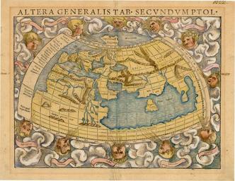 | Keywords: Altera Generalis Tab Secundum Ptol.jpg en Ptolemy's Other Second General Map on Ptolemy's second projection from Sebastian Münster's 1550 Cosmographia 1550 https //www raremaps com/gallery/archivedetail/18344/Altera_Generalis_Tab_Secundum_Ptol/Munster html BL Ruderman Antique Maps Ptolemy other versions <gallery> File Geographia universalis by Sebastian Munster jpg 1540 version File Ptolemaisch General Tafel JPG 1540 version File Typus Orbis Ptol Descriptus jpg c 1540 version File Cosmographia Sebastian Münster p 045 jpg 1545 version File Ptolemeisch General Tafel jpg 1588 version File Ptolemeisch General Tafel II jpg c 1588 version File Ptolemeisch General Tafel III jpg c 1588 version </gallery> PD-old-70-1923 1550s maps of the world 1550 maps Maps in Latin Cosmographia Münster Ptolemy's second projection 1550 |