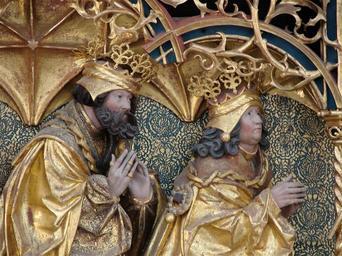 Keywords: Altertavle berg detalje.JPG no Detalje av Claus Bergs altertavle i Odense domkirke Sankt Knuds forestillende kong Hans til højre og Christian II til venstre own Orf3us King John II family sculptures at Odense Christian II of Denmark cc-zero |
