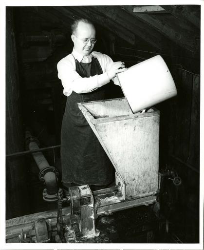 Keywords: AluminumFromClay 001.jpg The final step in the production of alumina from clay in the pilot plant at the National Bureau of Standards is the conversion of hydrated aluminum chloride to alumina by calcination The aluminum chloride crystals are fed into the hopper at the top of the 20-foot Herreshoff furnace and are stirred constantly by rabble arms as they pass downward over the heated hearths National Institute of Standards and Technology 5/1/1947 National Institute of Standards and Technology PD-USGov-NIST The images in the Aluminum from Clay Photographic Collection are in the public domain and are not subject to copyright in the United States However please pay special attention to the individual works to make sure there are no copyright restrictions indicated Individual works may require securing other permissions from the original copyright holder Use of the images from NIST Digital Collections is not restricted but a statement of attribution is required Please use the following attribution statement National Institute of Standards and Technology Digital Collections Gaithersburg MD 20899 PD-USGov National Bureau of Standards National Institute of Standards and Technology |