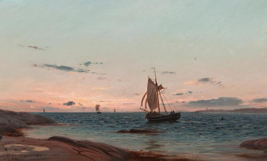 | Keywords: Amaldus Nielsen - Morning Mood by the coast (1878).jpg Artwork creator Amaldus Nielsen 1878 oil canvas cm 41 68 accession number object history credit line exhibition history Amaldus Nielsen 1878 ~ ll signature / date http //www arcadja com/auctions/de/private/nielsen_amaldus_clarin/kunstwerken/21115/0/ rvn 4 Grev Weddels Oslo 30 05 2012 lot 7 via ARCADJA auction results PD-old-auto-1923 1932 DEFAULTSORT Nielsen Amaldus Seascape paintings by Amaldus Nielsen 19th-century oil on canvas paintings of landscapes in Norway 1870 paintings in Norway 19th-century landscape paintings of Norway |