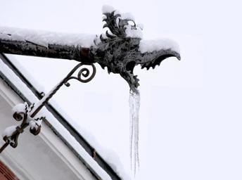 Keywords: Ambras Dachdrache.jpg Ambras Castle roof detail Innsbruck Tyrol Own Noclador 2009-01-30 Ambras Castle Gargoyles in Austria Icicles in Austria