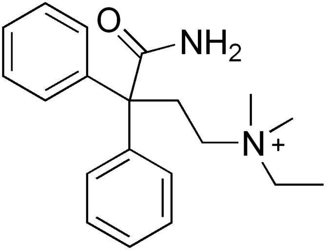 Keywords: Ambutonium.png chemical structure of ambutonium Own 2009-06-22 Edgar181 Quaternary ammonium ions Diphenylmethanes Anticholinergics Unsubstituted primary amides