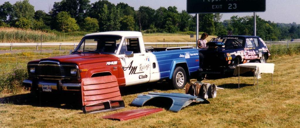 | Keywords: AMC Jeep J-10 truck and Gremlin pro-dragster combo.jpg en Jeep J-10 pickup truck - custom red/white/blue iconic AMC colors the AM Racing Club towing a pro-stock AMC Gremlin dragster the Trick Machine Picture taken a car show in Albany New York own 1999 CZmarlin ” Christopher Ziemnowicz releases all rights but a photo credit would be appreciated if this image is used anywhere other than Wikipedia Please leave a note at Wikipedia http //en wikipedia org/w/index php title User_talk CZmarlin action edit section new here Thank you en I the copyright holder of this work hereby release it into the public domain This applies worldwide AMC Gremlin Jeep Gladiator AMC Custom cars AMC dragsters |