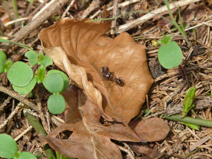 Keywords: ameisentransport ant theft ants wood ant ant nature red wood ant insect formica polyctena forest floor move change of location hiking leaf dry