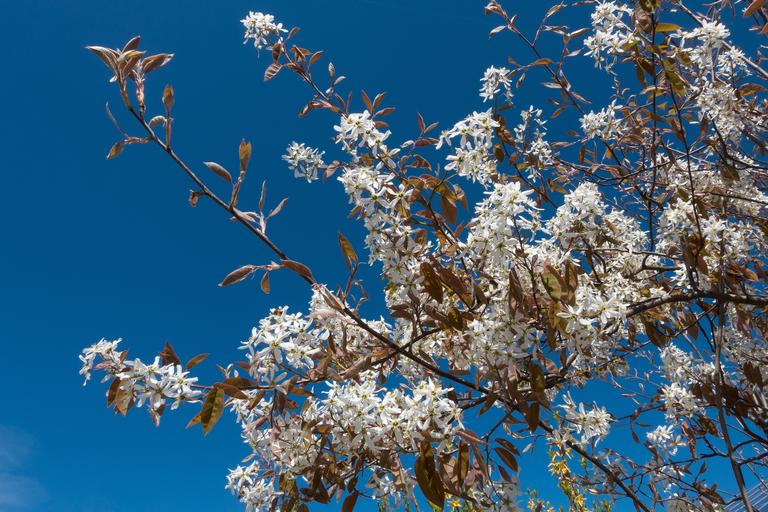 Keywords: amelanchier kernobstgewaechs large the rose family blossomed inflorescence flowers spring sunny sky blue