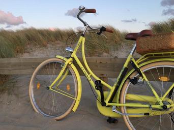Keywords: ameland beach dog holiday longing holland rest clouds sand watts endless sea north sea netherlands cyclist dune