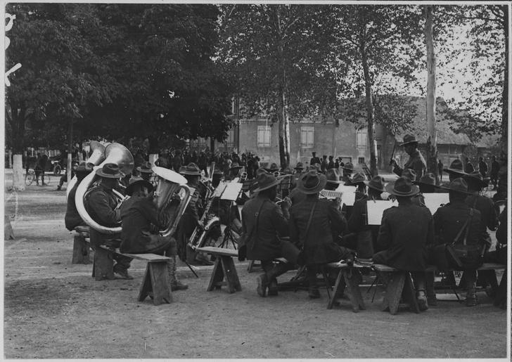 Keywords: American (African American) troops giving a military concert in an Alsatian village. - NARA - 533503.tif Scope and content General notes 533503 Local identifier 165-WW-127 19 War Department 1789 - 09/18/1947 Still Picture Records Section Special Media Archives Services Division NWCS-S National Archives at College Park 8601 Adelphi Road College Park MD 20740-6001 1917 - ca 1919 Record group Record Group 165 Records of the War Department General and Special Staffs 1860 - 1952 Record group ARC 494 American Unofficial Collection of World War I Photographs compiled 1917 - 1918 Series ARC 533461 File unit File unit ARC Variant control numbers NAIL Control Number NWDNS-165-WW-127 19 yes Other versions <gallery> File American African American troops giving a military concert in an Alsatian village - NARA - 533503 tif tif File African_American_troops_giving_a_military_concert_in_an_Alsatian_village _-_NARA_-_533503 jpg jpg Cropped color corrections </gallery> NARA-cooperation PD-USGov World War I forces of the United States in France African American soldiers African American history of the 1910s NARA TIF images with categorized JPGs Alsace in World War I Military life in World War I Military bands of the United States Army Military bands in World War I |