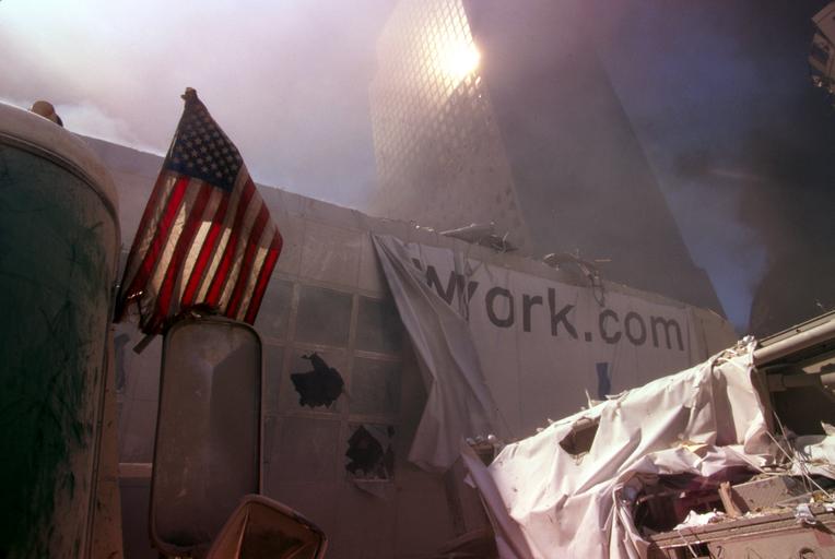 | Keywords: outdoor American flag amid rubble following September 11th terrorist attack on World Trade Center, New York City. Sept. 11, 2001. Image. Retrieved from the Library of Congress, www.loc.gov/pictures/item/2002719372/. (Accessed September 03, 2016.) Call Number: LC-A05- F23 [item] [P&amp;P] Forms part of: Collection of unattributed photographs ... The 250 color slides made at the World Trade Towers in New York City on September 11, 2001, received from the New York District Attorney's office from an unattributed photographer, are in the public domain. Privacy and publicity rights may apply. These slides were received from the New York District Attorney's office with the photographer relinquishing any and all copyright and right of attribution. Therefore, the photographer's name will not be associated with these photographs. Note – This image has been digitally adjusted for one or more of the following: - fade correction, - color, contrast, and/or saturation enhancement - selected spot and/or scratch removal - cropped for composition and/or to accentuate subject matter - straighten image American flag amid rubble following September 11th terrorist attack on World Trade Center, New York City. Sept. 11, 2001. Image. Retrieved from the Library of Congress, www.loc.gov/pictures/item/2002719372/. (Accessed September 03, 2016.) Call Number: LC-A05- F23 [item] [P&P] Forms part of: Collection of unattributed photographs ... The 250 color slides made at the World Trade Towers in New York City on September 11, 2001, received from the New York District Attorney's office from an unattributed photographer, are in the public domain. Privacy and publicity rights may apply. These slides were received from the New York District Attorney's office with the photographer relinquishing any and all copyright and right of attribution. Therefore, the photographer's name will not be associated with these photographs. Note – This image has been digitally adjusted for one or more of the following: - fade correction, - color, contrast, and/or saturation enhancement - selected spot and/or scratch removal - cropped for composition and/or to accentuate subject matter - straighten image <em>American flag amid rubble following September 11th terrorist attack on World Trade Center, New York City<em>. Sept. 11, 2001. Image. Retrieved from the Library of Congress, <a href="http://www.loc.gov/pictures/item/2002719372/" rel="nofollow">www.loc.gov/pictures/item/2002719372/</a>. (Accessed September 03, 2016.)