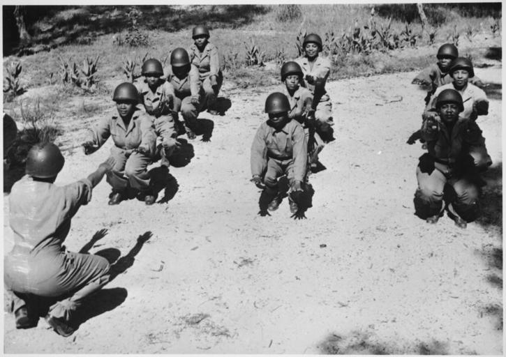 Keywords: nara:arcid=535782 national archives nationalarchives women workout wartime 1940s forties 1944 nurses african-american africanamerican helmets uniforms exercise australia monochrome blackandwhite outdoor black and white Original Caption:"American Negro nurses, commissioned second lieutenants in the U.S. Army Nurses Corps, limber up their muscles in an early-morning workout during an advanced training course at a camp in Australia. The nurses, who already had extensive training in the U.S., will be assigned to Allied hospitals in advanced sectors of the southwest Pacific theater.", 02/1944 U.S. National Archives’ Local Identifier:208-N-22962 From:Series: Photographs of Allied and Axis Personalities and Activities, compiled 1942 - 1945 Created By:Office for Emergency Management. Office of War Information. Overseas Operations Branch. New York Office. News and Features Bureau. (12/17/1942 - 09/15/1945) Production Date:02/1944 Persistent URL: arcweb.archives.gov/arc/action/ExternalIdSearch?id=535782 Repository: Franklin D. Roosevelt Library, Hyde Park, NY Access Restrictions: Unrestricted Use Restrictions: Unrestricted Original Caption:"American Negro nurses, commissioned second lieutenants in the U.S. Army Nurses Corps, limber up their muscles in an early-morning workout during an advanced training course at a camp in Australia. The nurses, who already had extensive training in the U.S., will be assigned to Allied hospitals in advanced sectors of the southwest Pacific theater.", 02/1944 U.S. National Archives’ Local Identifier:208-N-22962 From:Series: Photographs of Allied and Axis Personalities and Activities, compiled 1942 - 1945 Created By:Office for Emergency Management. Office of War Information. Overseas Operations Branch. New York Office. News and Features Bureau. (12/17/1942 - 09/15/1945) Production Date:02/1944 Persistent URL: arcweb.archives.gov/arc/action/ExternalIdSearch?id=535782 Repository: Franklin D. Roosevelt Library, Hyde Park, NY Access Restrictions: Unrestricted Use Restrictions: Unrestricted |