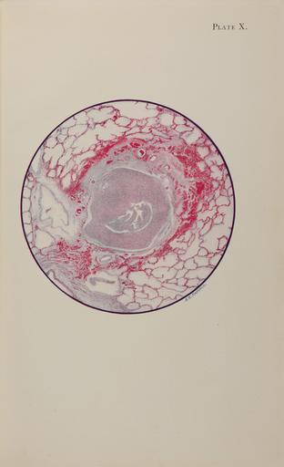 | Keywords: American Red Cross and Medical Research Committee, "An Atlas of Gas Poisoning" plate X.jpg en Plate X from An Atlas of Gas Poisoning by the American Red Cross and Medical Research Committee American Red Cross 1918 Plate title Microscopic section of human lung from mustard gas poisoning with death at end of second day 40 hours Text begins The bronchiole is filled with fibrin and pus cells and its lining epithelium has been completely destroyed The inflammation has caused a characteristic ring of haemorrhage in the tissues around the bronchial tube and infection is beginning to appear in the alveoli nearest to these inflamed tissues But there is no generalised pulmonary oedema and no disruptive emphysema The American Red Cross published this guide for the American Expeditionary Force in World War I sometimes called the chemists ™ war The chromolithograph plates of characteristic injuries were intended to help inexperienced officers identify the type of gas used in attacks 1918 Institution Chemical Heritage Foundation object history exhibition history credit line http //www chemheritage org/ Chemical Heritage Foundation accession number http //othmerlib chemheritage org/ Roy G Neville Historical Chemical Library http //www chemheritage org/ Chemical Heritage Foundation Image downloaded with permission from the Chemical Heritage Foundation as part of the Wikipedian in Residence initiative CHF-cooperation PD-old-100 An Atlas of Gas Poisoning Chemical weapons American Red Cross |