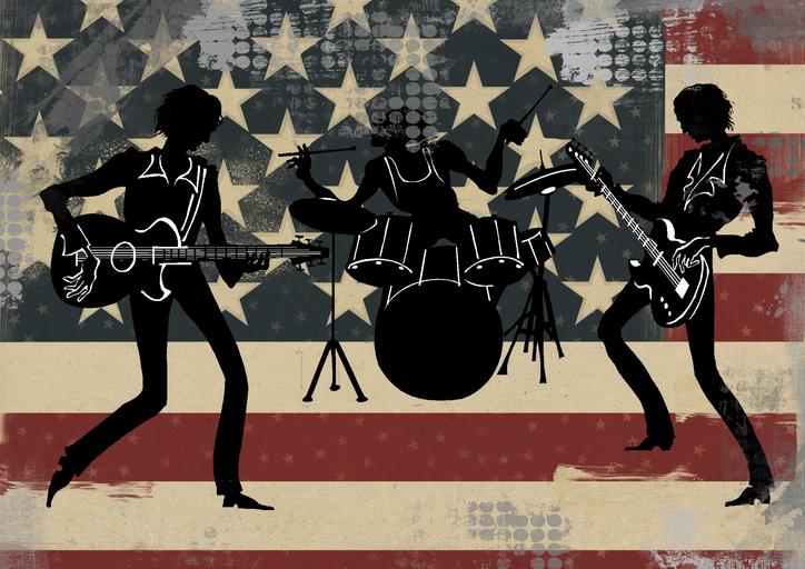 Keywords: american usa band silhouette drums flag guitar electric rock concert party event music entertainment festival club live nightlife stage people group performance fun show concert stage pop rock concert musician sound perform concert crowd