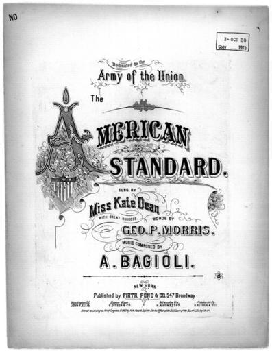 | Keywords: AmericanStandard songCover A.Baglioli Composer.jpg page http //lcweb2 loc gov/natlib/ihas/service/edison1/100004236/001p jpg image URL Accessed and uploaded January 20 2007 1864 Firth Pond and Co publishers composed by Antonio Bagioli librettist George Morris Public domain by virtue of age for the image by virtue of work of the US government for the provenance information PD-old Sheet music covers of New York City Music in 1864 Music of the American Civil War George Pope Morris | ||||