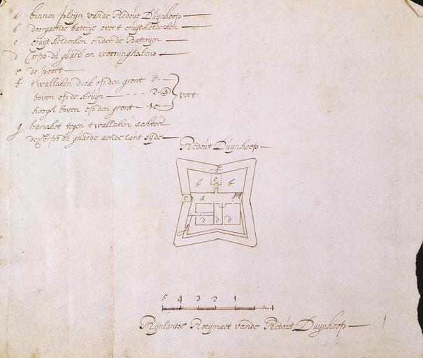 Keywords: AMH-2544-NA Ground plan of the Duynhoop redoubt.jpg Artwork nl Plan van redout Duynhoop nl Titel catalogus Leupe NA Plan van de redout Duynhoop Notities verso 654 van de Kaap II deel n 204; 498e Legenda a-g en According to the catalogue Leupe NA the original title reads Plan van de redout Duynhoop Notes on reverse 654 van de Kaap II deel n 204; 498e Key a-g Atlas of Mutual Heritage na http //www atlasofmutualheritage nl/en/object/ id 2544 Source at the Atlas of Mutual Heritage - http //www gahetna nl/collectie/archief/inventaris/index/eadid/4 VEL/inventarisnr/817/level/file Source at the Nationaal Archief en Subjects chart / map / plan fortification key nl Onderwerpen plattegrond / kaart vesting legenda Inscription Redout Duijnhoop nl circa 1654 nl Anoniem / Anonymous en Anoniem / Anonymous Institution Nationaal Archief nl pen op papier en pen on paper Size mm 210 240 accession number NL-HaNA_4 VEL_817 old number VEL0817 PD-Art-100 Old maps of the Dutch East India Company - Africa 1654 maps Table Bay