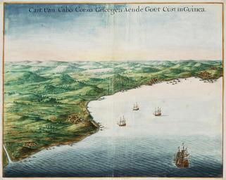 | Keywords: AMH-6749-NA View of Cabo Corso on the Gold Coast.jpg Artwork nl Gezicht op Cabo Corso aan de Goudkust nl Titel catalogus Leupe NA Gezicht in vogelvlucht op Cabo Corso Cape Coast en omgeving van de zeezijde Gezicht op Cabo Corso aan de Goudkust Cart Uan Cabo Corso Geleegen Aende Gout Cust in Guinea Bijzonderheden de kaart maakt deel uit van de Atlas Vingboons Naast het dorp Corso liggen de Zweedse en de Engelse loge Voor de kust liggen enkele schepen Cf Österreichische Nationalbibiothek Wenen inv nr Van der Hem 36 23 en Title in the Leupe catalogue NA Gezicht in vogelvlucht op Cabo Corso Cape Coast en omgeving van de zeezijde View of Cabo Corso on the Gold Coast Cart Uan Cabo Corso Geleegen Aende Gout Cust in Guinea Notes this chart forms part of the Vingboons Atlas The Swedish and British lodges flank the village of Corso Several vessels lie off the coast Cf Österreichische Nationalbibiothek Vienna Van der Hem inv nr 36 23 Atlas of Mutual Heritage na http //www atlasofmutualheritage nl/en/object/ id 6749 Source at the Atlas of Mutual Heritage - http //www gahetna nl/collectie/archief/inventaris/index/eadid/4 VELH/inventarisnr/619 38/level/file Source at the Nationaal Archief en Subjects tanck / well / watering hole building ship / vessel fortification flora church / parsonage nl Onderwerpen tanck / waterplaats / put gebouw schip / vaartuig vesting flora kerk / pastorie en Post this image is related to a WIC trading post called http //www atlasofmutualheritage nl/en/post/ id 688 Cape Coast Inscription Cart Uan Cabo Corso Geleegen Aende Gout Cust in Guinea nl circa 1665 Creator Johannes Vingboons nl Johannes Vingboons landmeter / kaartenmaker en Johannes Vingboons land surveyor / mapmaker Institution Nationaal Archief nl aquarel/waterverf op papier en watercolour on paper Size cm 53 5 43 accession number NL-HaNA_4 VELH_619 38 old number VELH0619 38 PD-Art-100 West-Indische Compagnie 1665 |
