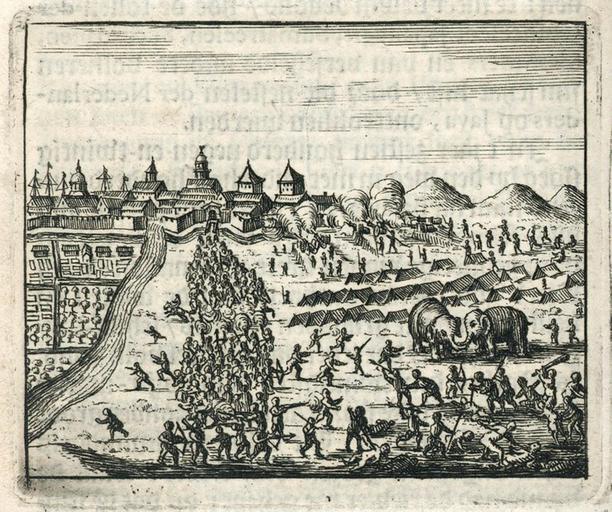 | Keywords: AMH-6775-KB Siege of Batavia by the sultan of Mataram.jpg Artwork nl Belegering van Batavia door de sultan van Mataram nl Belegering van Batavia door de sultan van Mataram In 1628 viel de VOC-stad Batavia ten prooi aan de veroveringsdrang van Sultan Agoeng van Mataram De sultan zou met de inlijving van Batavia bijna het hele eiland Java in handen krijgen Het voortbestaan van de VOC op Java kwam op het spel te staan De muren van het kort daarvoor voltooide fort Batavia bleken bestand tegen de serie aanvallen vanuit het achterland door de troepen van Sultan Agoeng van Mataram Door voedselgebrek van zijn troepen moest de sultan de strijd beƫindigen en Siege of Batavia by the sultan of Mataram In 1628 the VOC city of Batavia fell victim to Sultan Agoeng of Mataram's will to conquer By capturing Batavia the sultan would have acquired almost the whole island of Java Consequently the future of the VOC on Java hung in the balance But the walls of the recently completed Batavia Fort proved strong enough to resist the series of attacks from the hinterland by the armies of Sultan Agoeng of Mataram Because of lack of food for the troops the sultan was forced to withdraw Atlas of Mutual Heritage kb http //www atlasofmutualheritage nl/en/object/ id 6775 Source at the Atlas of Mutual Heritage en Subjects house battle / taking / war fight fauna Person European encampment / military base building survey / view Asians Africans nl Onderwerpen huis / woonhuis veldslag / oorlog strijd / inname fauna Persoon Europeanen kampement / legerplaats gebouw overzicht / aanzicht Aziaten Afrikanen after 1680 Creator Aart Dircksz Oossaan Creator Sander Wybrants nl Anoniem / Anonymous graveur / etser Aart Dircksz Oossaan uitgever Sander Wybrants uitgever en Anoniem / Anonymous engraver / etcher Aart Dircksz Oossaan publisher Sander Wybrants publisher Institution Koninklijke Bibliotheek nl gravure op papier en engraving on paper Size cm 7 6 accession number 511 K 23 p 358 PD-Art-100 Dutch East India Company |