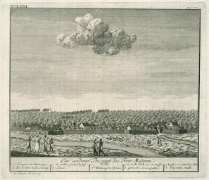 Keywords: AMH-7078-KB View of the fort on Matara.jpg Artwork nl Aanzicht op het fort van Matara nl Aanzicht op het fort van Matara Ein anderer Prospect des Forts Maderen Linksboven LXXI Rechtsboven pag 211 Legenda a Europaeische Wohnungen / b die hingere halbe Basteij / c die mitlere gantze Basteij / d Kirch / e Thor / f Wohnung des Dißavas / g das halbe Bollwerck am Wasser / h Gebüsch u Cocus Gaerten / i Wasser vor u nemben dem Ort / k Elephaten Staelle en View of the fort on Matara Ein anderer Prospect des Forts Maderen Top left LXXI Top right pag 211 Key a Europaeische Wohnungen / b die hingere halbe Basteij / c die mitlere gantze Basteij / d Kirch / e Thor / f Wohnung des Dißavas / g das halbe Bollwerck am Wasser / h Gebüsch u Cocus Gaerten / i Wasser vor u nemben dem Ort / k Elephaten Staelle Atlas of Mutual Heritage kb http //www atlasofmutualheritage nl/en/object/ id 7078 Source at the Atlas of Mutual Heritage en Subjects survey / view fauna Person fortification key Asians Africans building house gate garden / ornamental garden church / parsonage flora nl Onderwerpen overzicht / aanzicht fauna Persoon vesting legenda Aziaten Afrikanen gebouw huis / woonhuis poort tuin / siertuin kerk / pastorie flora en Post this image is related to a VOC trading post called http //www atlasofmutualheritage nl/en/post/ id 331 Matara Inscription Ein anderer Prospect des Forts Maderen author J W Heijdt del et sculp nl between 1735 1744 Creator Johann Carl Tetschner Creator Johann Wolfgang Heydt nl Johann Carl Tetschner uitgever Johann Wolfgang Heydt tekenaar en Johann Carl Tetschner publisher Johann Wolfgang Heydt draughtsman Institution Koninklijke Bibliotheek nl koperdruk op papier en copperplate printing on paper Size cm 24 5 29 accession number 2102 A 7 p 211 PD-Art-100 Dutch East India Company 1730s |