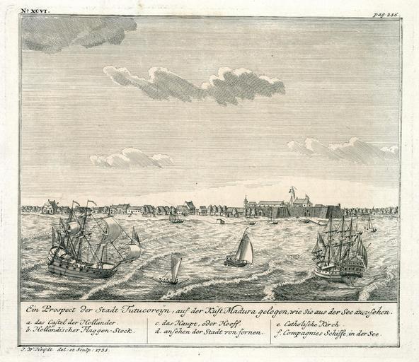 | Keywords: AMH-7103-KB View of Tutecorijn.jpg Artwork nl Gezicht op Tutecorijn nl Gezicht op Tutecorijn Ein Prospect der Stadt Tutecoreijn auf der Küst-Madura gelegen wie sie aus der see anzusehen Linksboven No XCVI Rechtsboven pag 286 Legenda a das Castel der Holländer / b Holländischer Flaggen-Stock / c das Haupt oder Hooff / d ansehen der Stadt von fornen / e Catholische Kirch / f Compagnies Schiffe in der See en View of Tutecorijn Ein Prospect der Stadt Tutecoreijn auf der Küst-Madura gelegen wie sie aus der see anzusehen Top left No XCVI Top right pag 286 Key a das Castel der Holländer / b Holländischer Flaggen-Stock / c das Haupt oder Hooff / d ansehen der Stadt von fornen / e Catholische Kirch / f Compagnies Schiffe in der See Atlas of Mutual Heritage kb http //www atlasofmutualheritage nl/en/object/ id 7103 Source at the Atlas of Mutual Heritage en Subjects survey / view fortification building house ship / vessel anchorage / pier / harbour church / parsonage Person nl Onderwerpen overzicht / aanzicht vesting gebouw huis / woonhuis schip / vaartuig rede / haven / pier kerk / pastorie Persoon en Post this image is related to a VOC trading post called http //www atlasofmutualheritage nl/en/post/ id 343 Tuticorin Inscription Ein Prospect der Stadt Tutecoreijn auf der Küst-Madura gelegen wie sie aus der see anzusehen author J W Heijdt del et Sculp 1735 nl 1735 Creator Johann Carl Tetschner Creator Johann Wolfgang Heydt nl Johann Carl Tetschner uitgever Johann Wolfgang Heydt tekenaar en graveur en Johann Carl Tetschner publisher Johann Wolfgang Heydt draughtsman and engraver Institution Koninklijke Bibliotheek nl koperdruk op papier en copperplate printing on paper Size cm 25 29 accession number 2102 A 7 p 286 PD-Art-100 Dutch East India Company 1735 |
