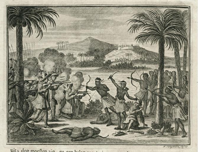| Keywords: AMH-7214-KB The conquest of Hoetemoeri.jpg Artwork nl De verovering van Hoetemoeri nl De verovering van Hoetemoeri Hoetemoeri is een dorp op het eiland Hitu dat in 1618 door gouverneur Van Speult onderworpen werd De afbeelding is afkomstig uit het het werk 'Oud en Nieuw Oost-Indiën' van François Valentyn Op de achtergrond is de vesting van Hoetemoeri te zien en The conquest of Hoetemoeri Hoetemoeri is a village on the island of Hitu that was conquered in 1618 by governor Van Speult The plate is taken from the work 'Oud en Nieuw Oost-Indien' by Francois Valentyn In the background the fort of Hoetemoeri is depicted Atlas of Mutual Heritage kb http //www atlasofmutualheritage nl/en/object/ id 7214 Source at the Atlas of Mutual Heritage en Subjects fortification building flora battle / taking / war fight Person European Asians Africans survey / view nl Onderwerpen vesting gebouw flora veldslag / oorlog strijd / inname Persoon Europeanen Aziaten Afrikanen overzicht / aanzicht 1724 Creator Dirk Jongman Creator J van Braam Creator Gerard onder de Linden nl Dirk Jongman graveur / etser J van Braam uitgever Gerard onder de Linden uitgever en Dirk Jongman engraver / etcher J van Braam publisher Gerard onder de Linden publisher Institution Koninklijke Bibliotheek nl gravure op papier en engraving on paper Size cm 12 16 accession number 185 A 5 deel II II p 40 PD-Art-100 Dutch East India Company 1724 |
