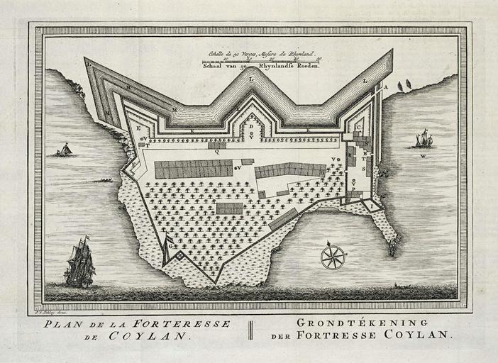 Keywords: AMH-8022-KB Floor plan of the fort at Coylan.jpg Artwork nl Plattegrond van het fort te Coylan nl Plattegrond van het fort te Coylan Plan de la Forteresse de Coylan Grondtékening der Fortresse Coylan Op de plattegrond staan legendanummers Deze worden echter niet verklaard en Floor plan of the fort at Coylan Plan de la Forteresse de Coylan Grondtékening der Fortresse Coylan The floor plan is marked with numbers relating to a key But there are no explanatory notes to the key Atlas of Mutual Heritage kb http //www atlasofmutualheritage nl/en/object/ id 8022 Source at the Atlas of Mutual Heritage en Subjects chart / map / plan fortification ship / vessel compass / dial anchorage / pier / harbour nl Onderwerpen plattegrond / kaart vesting schip / vaartuig kompas / windroos rede / haven / pier en Post this image is related to a VOC trading post called http //www atlasofmutualheritage nl/en/post/ id 392 Quilon Inscription Plan de la Forteresse de Coylan / Grondtékening der Fortresse Coylan author J v Schley direx nl 1755 Creator Pierre d' Hondt Creator Jacobus van der Schley nl Pierre d' Hondt uitgever Jacobus van der Schley direxit en Pierre d' Hondt publisher Jacobus van der Schley direxit Institution Koninklijke Bibliotheek nl gravure op papier en engraving on paper Size cm 15 5 21 5 accession number 693 C 6 dl XIII op p 391 PD-Art-100 Maps of the Dutch East India Company - India 1755 |
