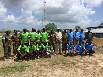 | Keywords: outdoor Soldiers from the Kenyan Defence Forces serving under the African Union Mission in Somalia (in green jerseys), in a group photo with community leaders of Afmadow in Kismayo (in blue jerseys) before a friendly volleyball match. This was after KDF donated sports equipment to the community on December 28, 2015. AMISOM Photo Soldiers from the Kenyan Defence Forces serving under the African Union Mission in Somalia (in green jerseys), in a group photo with community leaders of Afmadow in Kismayo (in blue jerseys) before a friendly volleyball match. This was after KDF donated sports equipment to the community on December 28, 2015. AMISOM Photo Soldiers from the Kenyan Defence Forces serving under the African Union Mission in Somalia (in green jerseys), in a group photo with community leaders of Afmadow in Kismayo (in blue jerseys) before a friendly volleyball match. This was after KDF donated sports equipment to the community on December 28, 2015. AMISOM Photo AMISOM KDF Donation-3 (23515132813).jpg Soldiers from the Kenyan Defence Forces serving under the African Union Mission in Somalia in green jerseys in a group photo with community leaders of Afmadow in Kismayo in blue jerseys before a friendly volleyball match This was after KDF donated sports equipment to the community on December 28 2015 AMISOM Photo<br/> Personality rights https //www flickr com/photos/au_unistphotostream/23515132813/ AMISOM_KDF_Donation-3 2016-01-03 09 57 https //www flickr com/people/61765479 N08 AMISOM Public Information cc-zero AMISOM Public Information https //flickr com/photos/61765479 N08/23515132813 2016-05-19 21 15 45 cc-zero Photographs by the African Union Mission to Somalia Uncategorized 2016 November 11 |