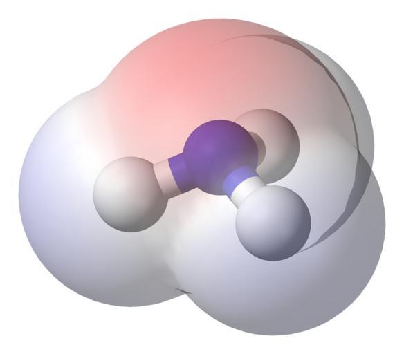 | Keywords: Ammonia-elpot-transparent-3D-balls-B.png A van der Waals' surface coloured according to charge superimposed on a ball-and-stick model of the ammonia molecule NH<sub>3</sub> Red represents partially negatively charged regions blue represents partially positively charged regions and white represents neutral uncharged regions Created in Accelrys DS Visualizer 1 5 edited with Photoshop Elements 3 0 Own 2007-11-30 Ben Mills Benjah-bmm27 Images by Ben Mills Ball-and-stick models Ammonia Molecular electrical potential surfaces |