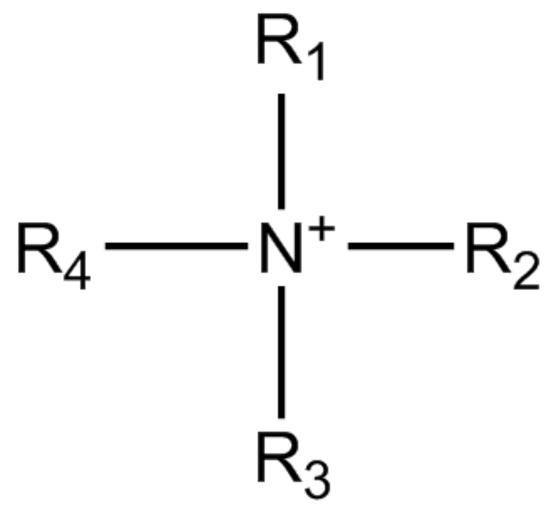 Keywords: Ammonium ion.png quaternary ammonium ion general structure own Klever 2009-05-06 Functional groups Quaternary ammonium ions