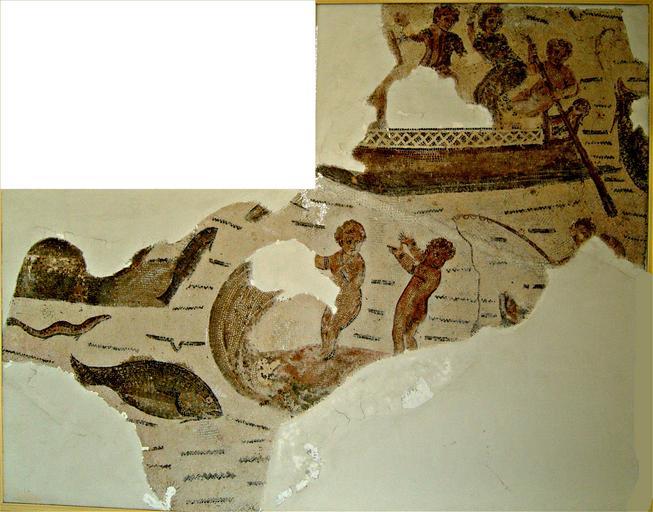 | Keywords: Amours pecheurs Neapolis.JPG en Fishermen Erotes on fishing boats Baths of Sidi Mahersi Fourth century AD fr Mosaïque représentant des barques de pêches montées par des Amours pêcheurs Thermes de Sidi Mahersi IVe siècle après J -C ar فتيان مجنحون يركبون قوارب صيد حمامات سيدي المحرصي القرن الرابع ميلادي own Habib M henni 2010-10-29 PD-art-100 36 450644 10 736153 Ancient Roman mosaics in the Nabeul Museum Mosaics of erotes Fishermen in art 4th-century mosaics Tunisia Mosaics of fish | ||||