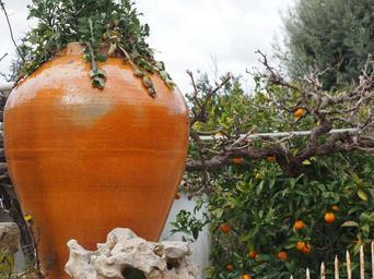 Keywords: amphora decoration flower stand terracotta garden decoration orange