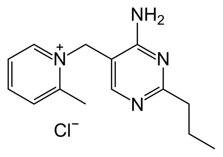 | Keywords: Amprolium.svg validSVG Skeletal formula of amprolium Created using http //www acdlabs com/download/chemsk html ACD/ChemSketch 10 0 Inkscape and vim Own work after ChemSpider http //www chemspider com/66070 66070 2009-01-18 Fvasconcellos Antiprotozoal agents Chloride salts of organic compounds Pyridinium salts |