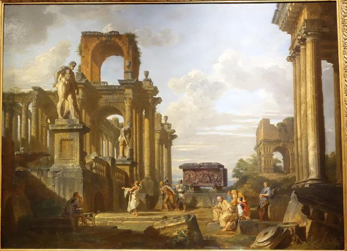 Keywords: An Architectural Capriccio of the Roman Forum with Philosophers and Soldiers among Ancient Ruins ..., by Giovanni Paolo Panini, c. 1745-1750, oil on canvas - National Museum of Western Art, Tokyo - DSC08515.JPG en Painting in the National Museum of Western Art Tokyo Japan This artwork is in the public domain because the artist died more than 70 years ago Photography was permitted in the museum without restriction 2013-09-06 22 07 12 own Daderot PD-old-70 cc-zero Uploaded with UploadWizard An Architectural Capriccio of the Roman Forum by Giovanni Paolo Panini |