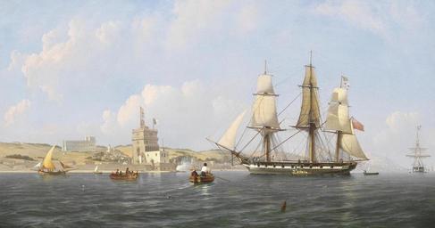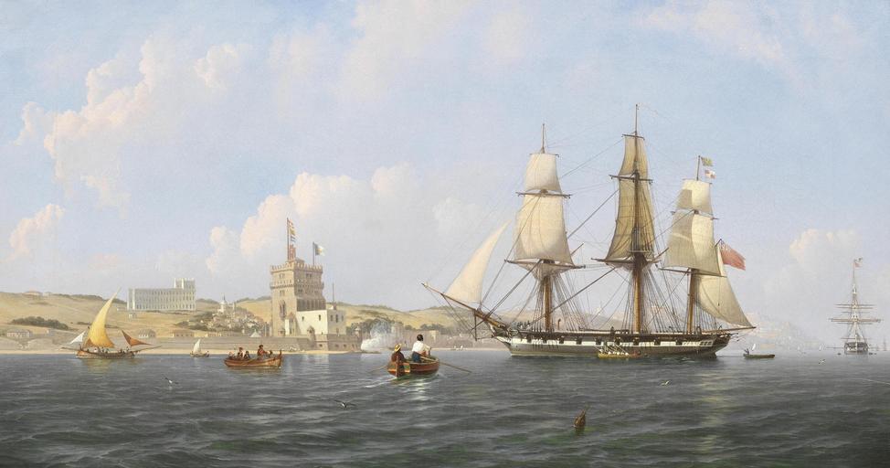 View Original:An English frigate arriving in the Tagus off the Belem Tower - Giuseppe Schranz (attrib.).png (2360x1240)