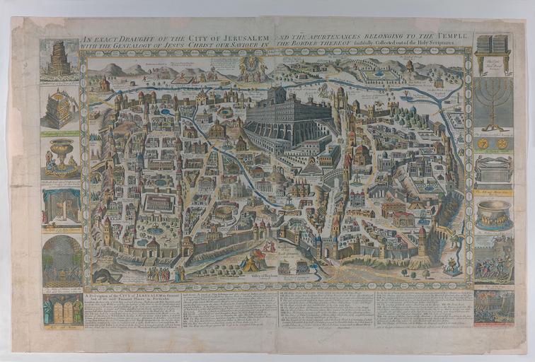 Keywords: An exact draught of the City of Jerusalem and the apurtenances belonging to the Holy Temple - With the Genealogy of Jesus Christ... faithfully collected out of the Holy Scriptures.jpg מפה ש ירוש י http //web nli org il/sites/NLI/Hebrew/digitallibrary/Laor-Collection/Pages/maps aspx en An imaginary plan of ancient Jerusalem Includes an impressive representation of the Temple as a fortress Sayer London 1770 he תאור דמיוני ש ירוש י העתיקה במרכז בית המקדש מתואר כמצודה מרשימה סאייר ונדון 1770 Dimensions 570x905 mm http //web nli org il/sites/NLI/Hebrew/digitallibrary/pages/viewer aspx presentorid NLI_MAPS_JER DocID NNL_MAPS_JER002368174 Click to enlarge http //web nli org il/sites/NLIS/en/Maps The Eran Laor Cartographic Collection National Library of Israel 2015-12-08 17 28 25 http //web nli org il/sites/NLI/English/Pages/default aspx The National Library of Israel PD-old Old maps of Jerusalem GLAM National Library of Israel Laor collection |