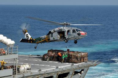 Keywords: An MH-60H picks up cargo from USNS Bridge. (8224207904).jpg ARABIAN SEA Nov 25 2012 Sailors aboard the Military Sealift Command fast combat support ship USNS Bridge T-AOE 10 prepare to hook a load of supplies to an MH-60S Sea Hawk helicopter assigned to the Eightballers of Helicopter Sea Combat Squadron HSC 8 for transport to the Nimitz-class aircraft carrier USS Dwight D Eisenhower CVN 69 during a replenishment-at-sea Dwight D Eisenhower is deployed to the U S 5th Fleet area of responsibility conducting maritime security operations theater security cooperation efforts and support mission as part of Operation Enduring Freedom U S Navy photo by Mass Communication Specialist 1st Class Nathanael Miller/Released 121125-N-YX169-042 Join the conversation http //www facebook com/USNavy www facebook com/USNavy http //www twitter com/USNavy www twitter com/USNavy http //navylive dodlive mil navylive dodlive mil https //www flickr com/photos/usnavy/8224207904/ An MH-60H picks up cargo from USNS Bridge 2012-11-25 02 10 https //www flickr com/people/56594044 N06 Official U S Navy Page from United States of America PD-USNavy Official U S Navy Imagery https //flickr com/photos/56594044 N06/8224207904 2016-12-14 03 44 51 United States Government Work Naval ships of the United States Files from the U S Navy Flickr stream Files uploaded by Reguyla United States Navy |