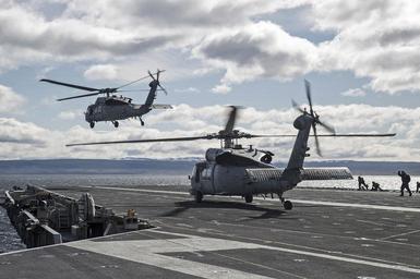 Keywords: MH-60S Sea Hawk helicopter Black Knights Helicopter Sea Combat Squadron takes off flight deck