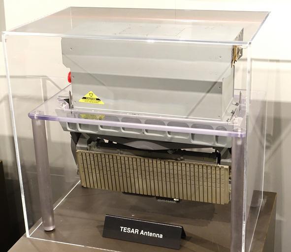 Keywords: AN-ZPQ-1, TESAR radar antenna, Tactical Endurance Synthetic Aperature Radar, Northrup Grumman, 1996 - National Electronics Museum - DSC00422.JPG en Exhibit in the National Electronics Museum 1745 West Nursery Road Linthicum Maryland USA All items in this museum are unclassified The museum permitted photography without restriction 2014-07-21 15 21 44 own Daderot cc-zero Phased array radars in the National Electronics Museum Uploaded with UploadWizard AN/ZPQ-1 Active electronically scanned arrays |