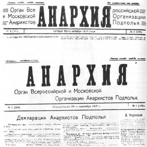 Keywords: Anarchy newspaper.jpg en The editorial of the newspaper Anarchy with the declaration of the launch terrorist struggle against the Bolsheviks ru Пе едовица газеты Ана хия с декла ацией о начале те о истической бо ьбы п отив большевиков Велидов А К асная книга ВЧК В 2 т «Политиздат» 1990 г Все оссийская и осковская о ганизация ана хистов подполья 1919-09-25 PD-old Newspapers of Russia 1919 Anarchism in Russia Images from books by Politizdat Newspapers of Russia to be categorised by name |
